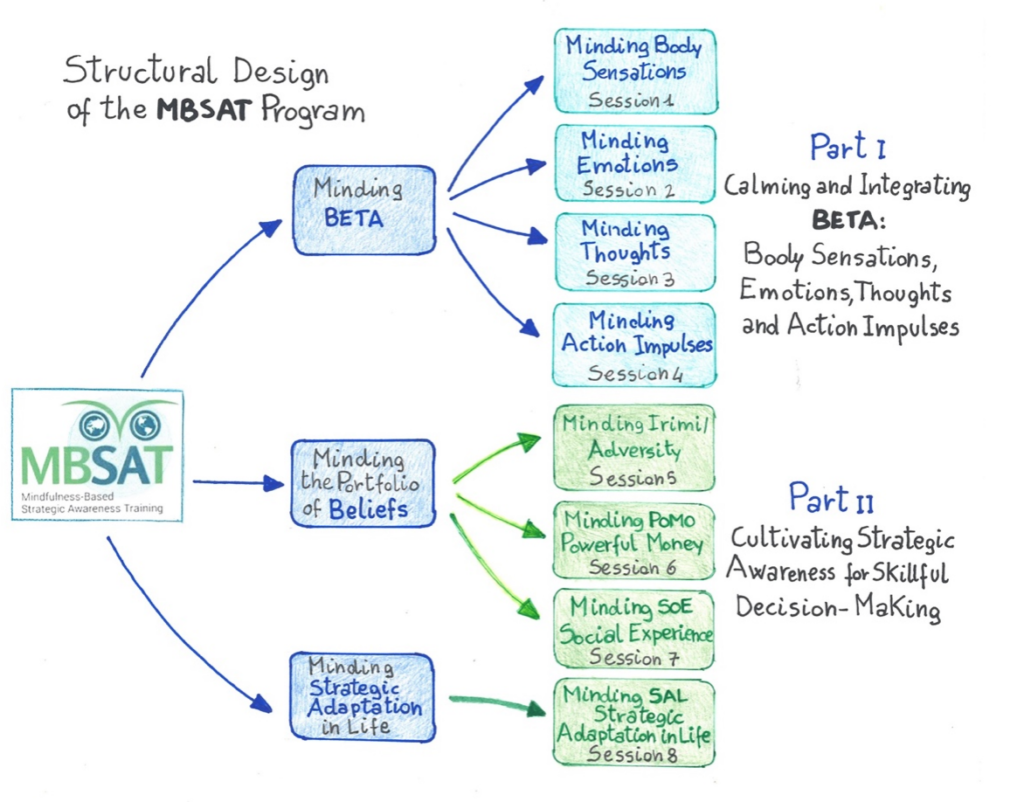 Mindfulness-Based Strategic Awareness Training (MBSAT)  integrates Karl Friston’s Free Energy Principle and Active Inference theory into an eight-session, evidence-based program.  Picture your brain as an elite prediction engine that constantly  updates hidden models to minimize surprise.